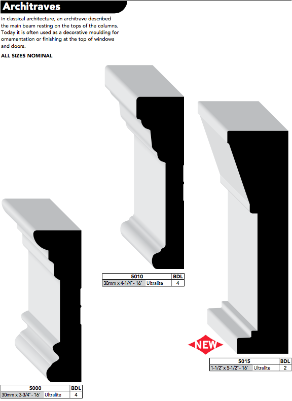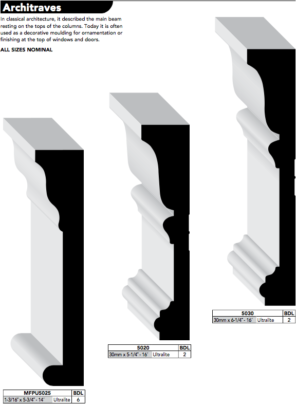 In classical architecture, an architrave described the main beam resting on the tops of the columns. Today it is often used as a decorative moulding for ornamentation or finishing at the top of windows and doors.