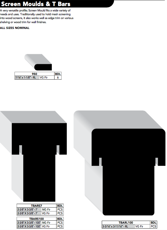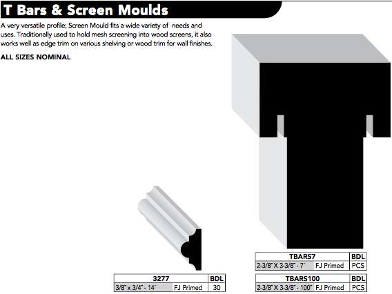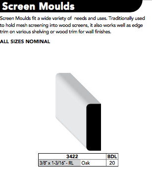 A very versatile profile; Screen Mould fits a wide variety of needs and uses. Traditionally used to hold mesh screening into wood screens, it also works well as edge trim on various shelving or wood trim for wall finishes.