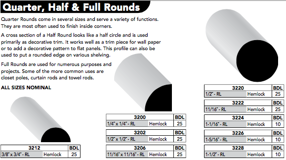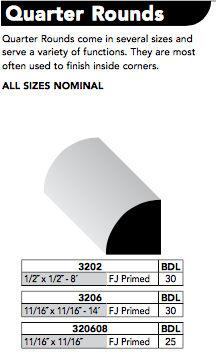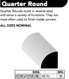 Quarter Rounds come in several sizes and serve a variety of functions. They are most often used to finish inside corners.